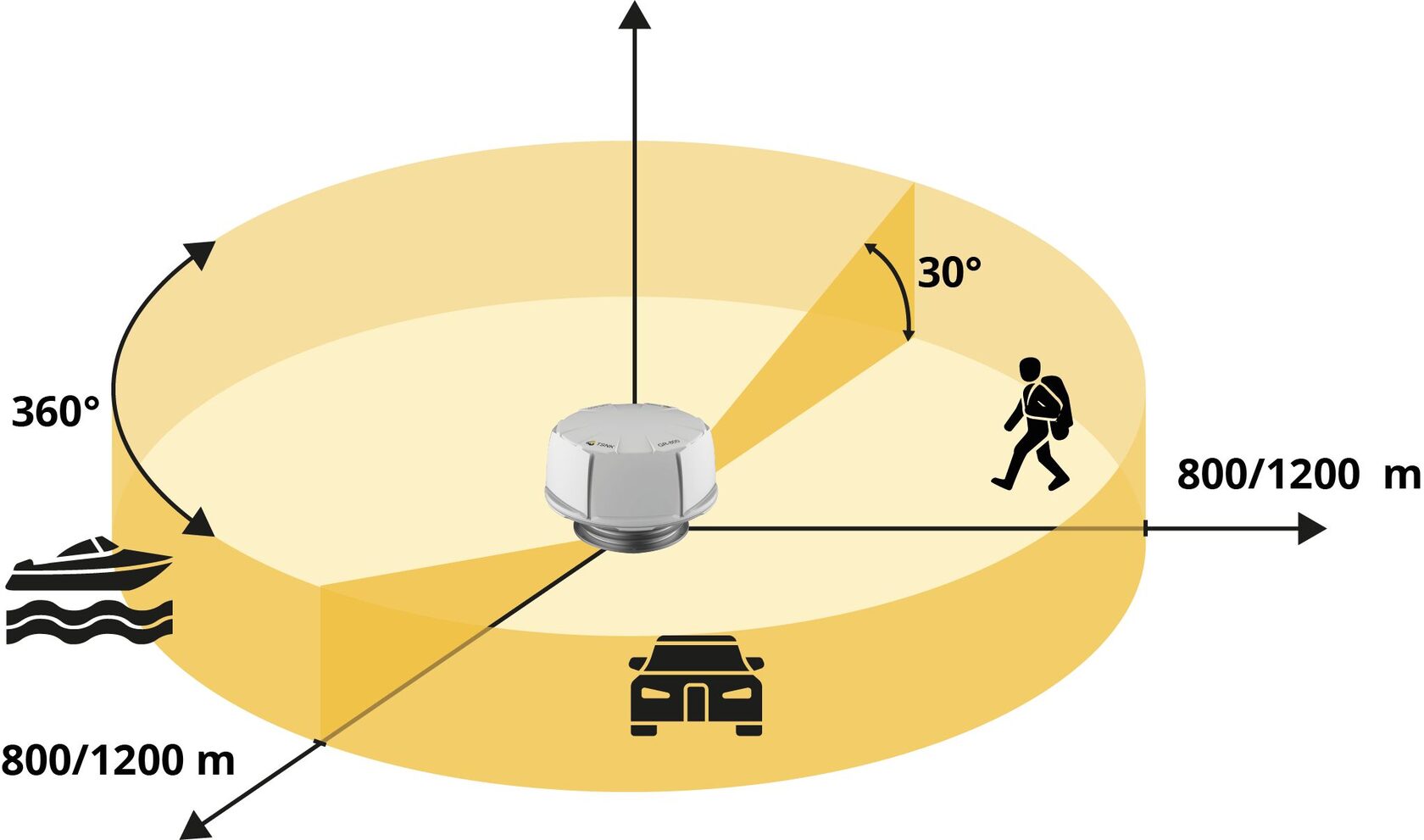 Тип радара; Импульсно-доплеровcкий, Твердотельный, Безкинематический Рабочая частота; Диапазон С (5,7-5,8 ГГц) Обзор радара по Азимуту, град; 360° Дальность Обнаружения; 800 м Одновременно отслеживаемые цели; до 250 Минимальная ЭПР (Эффективная Площадь Рассеивания); 0,25m² - Человек Фильтр Ложных тревог; Интеллектуальный Динамическое Распределение Мощности; Да Питание / Передача данных; PoE+ / Ethernet Рабочая температура; -40°C +60°C